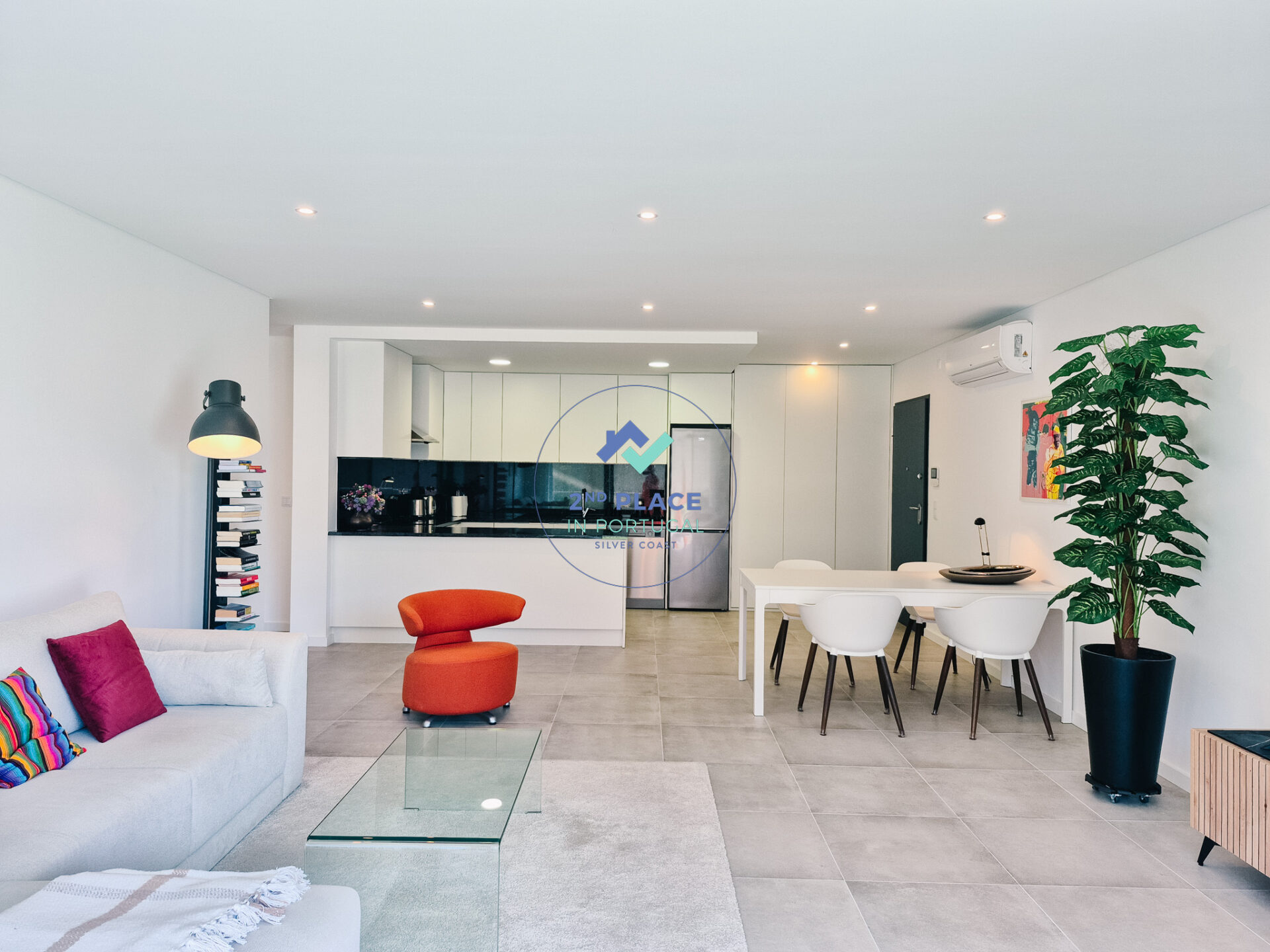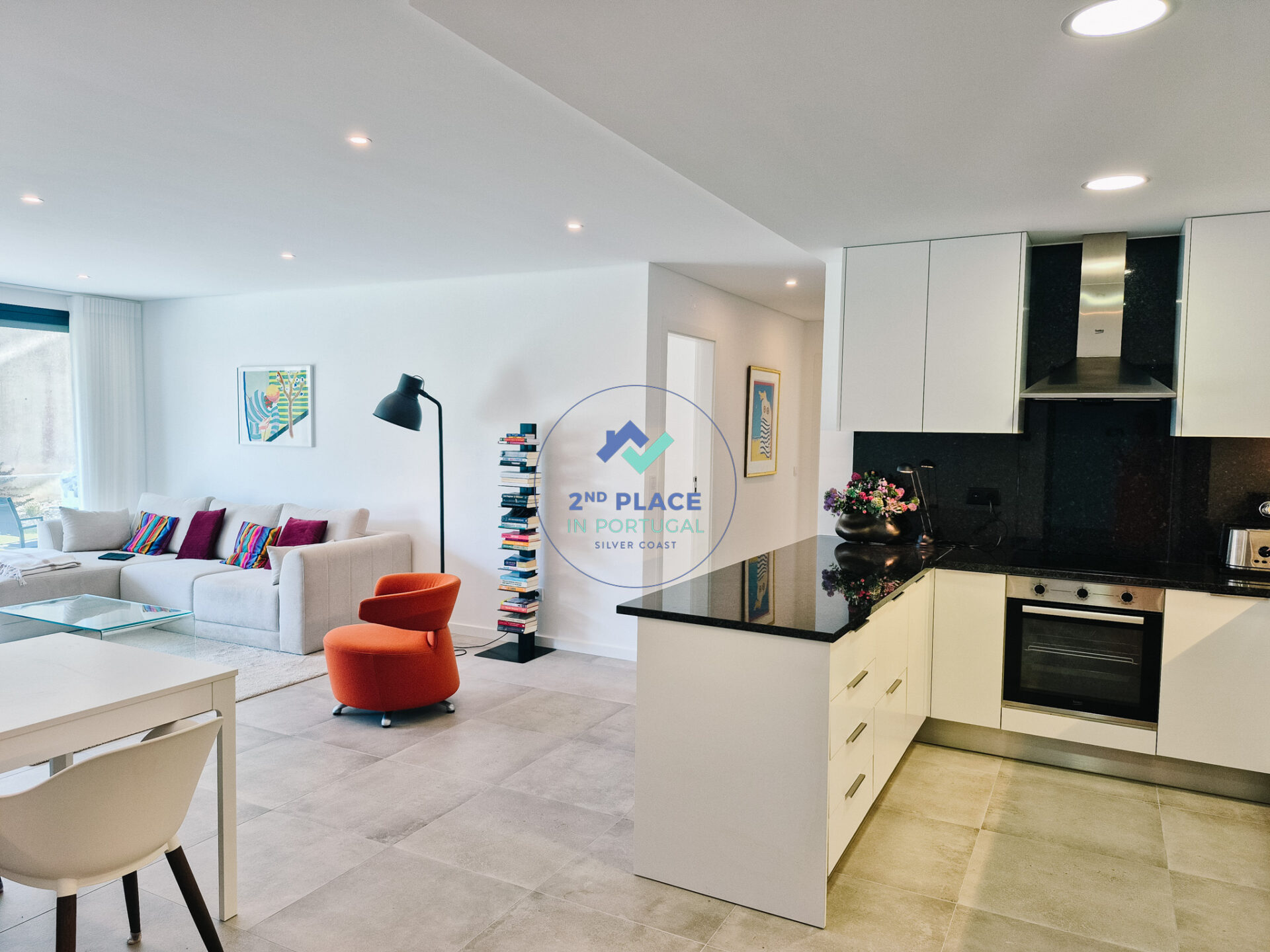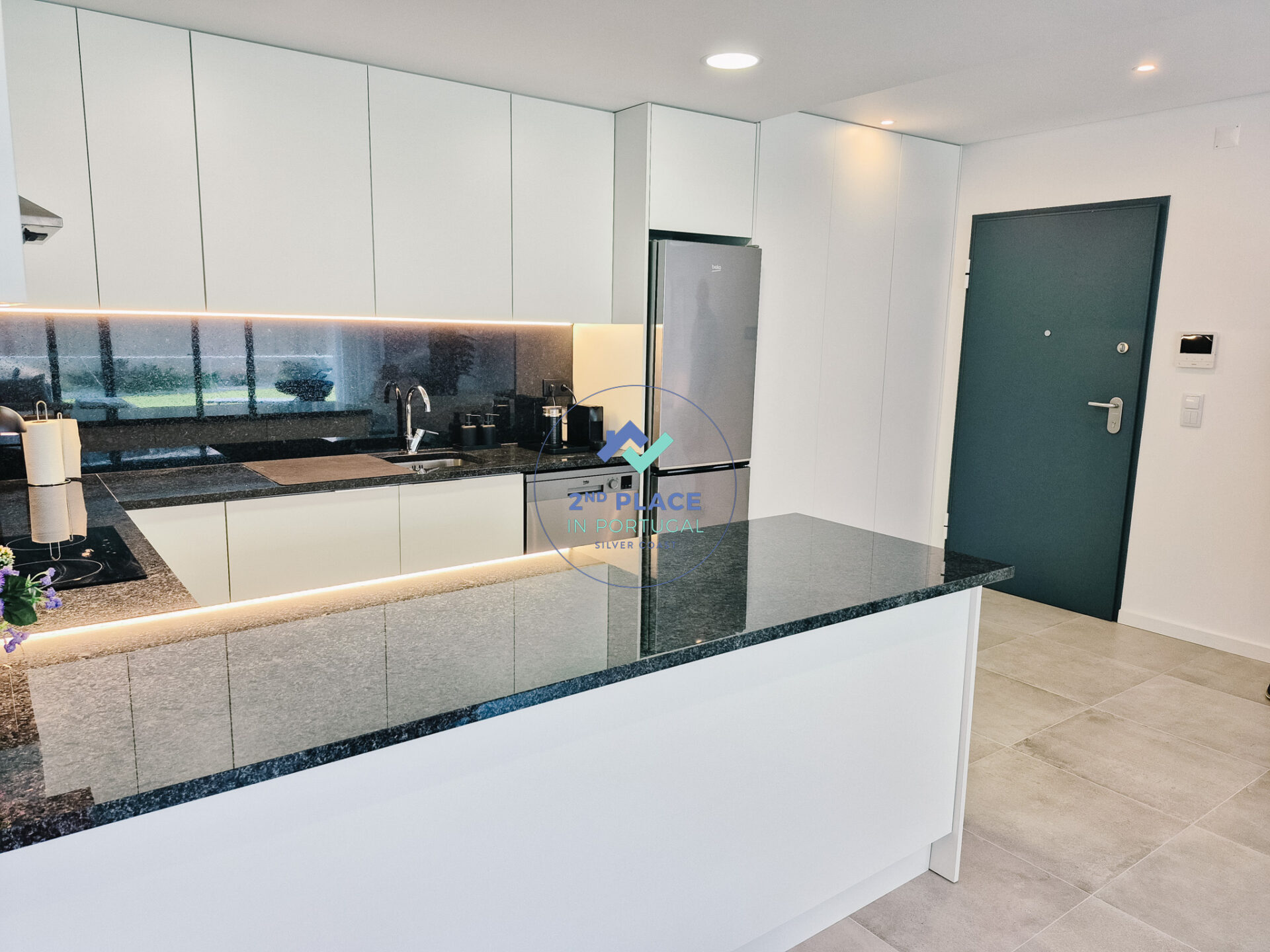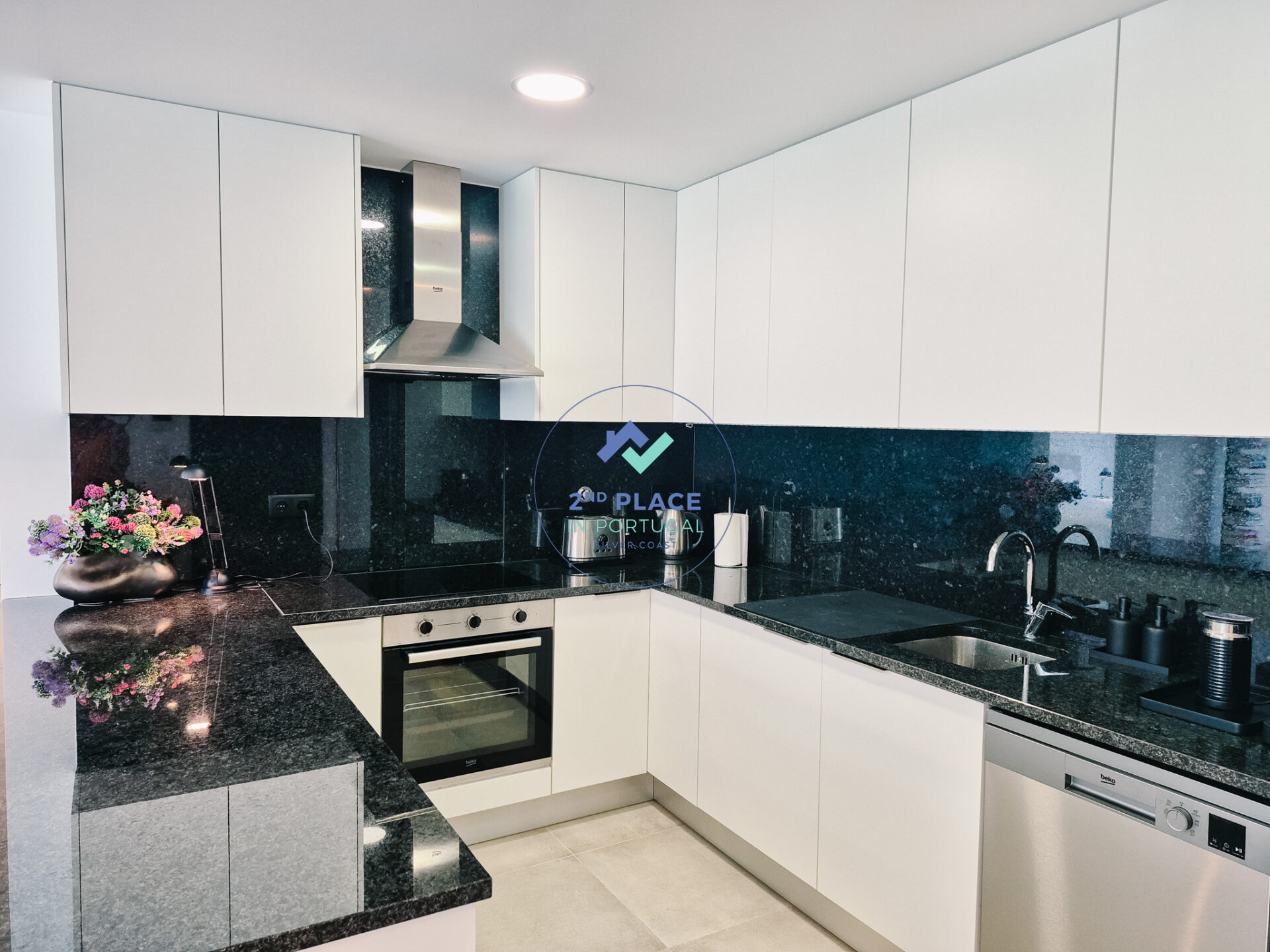 Dit ruime T2-appartement op de begane grond van een gebouw in São Martinho do Porto biedt alle comfort voor een aangenaam verblijf. De moderne open keuken is volledig uitgerust met oven, koelkast, vriezer, inductiekookplaat en vaatwasser. De aangrenzende eethoek heeft tafel en stoelen voor gezellige maaltijden.