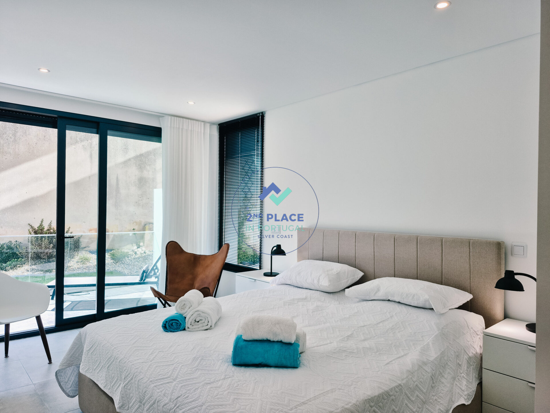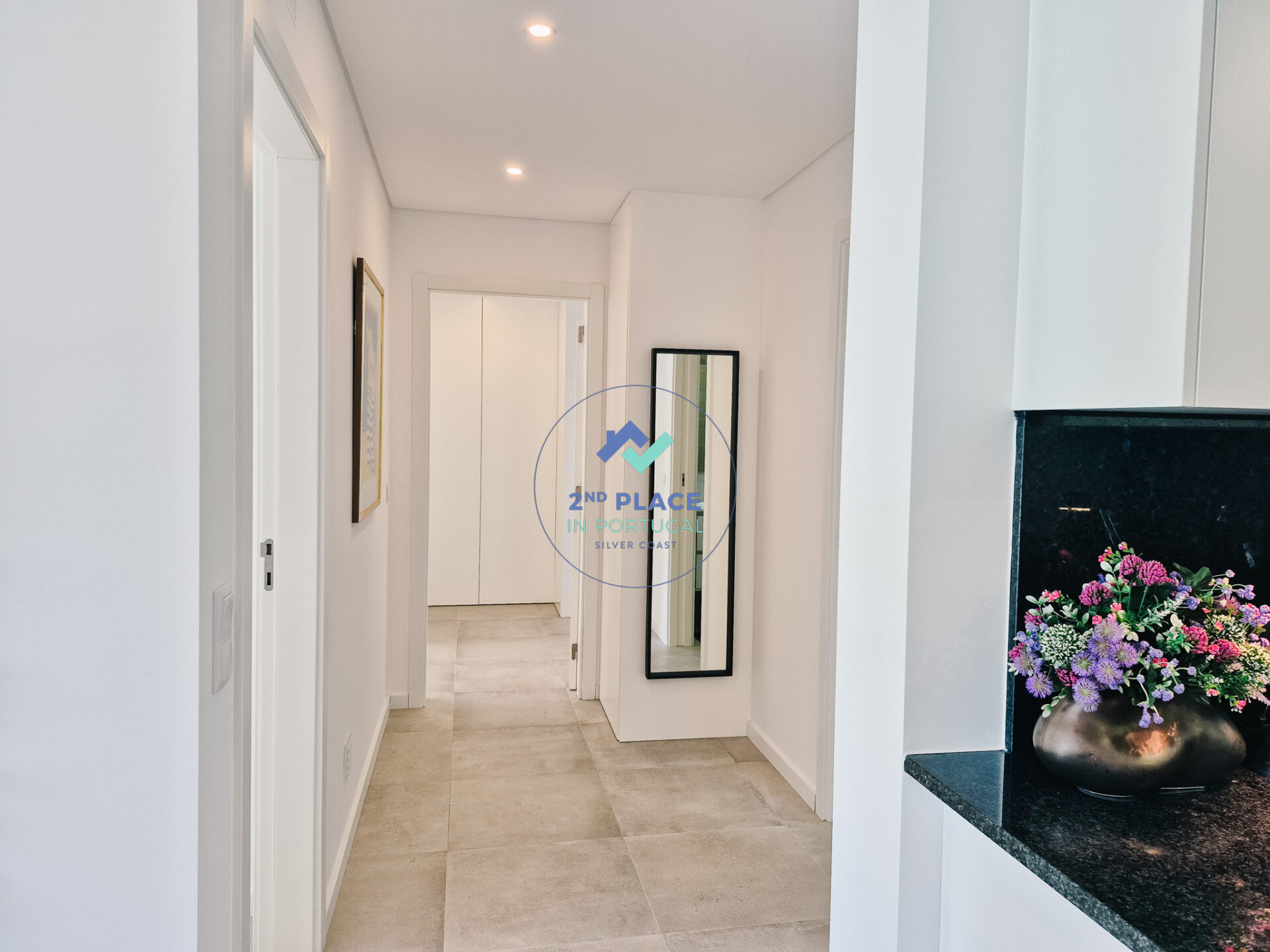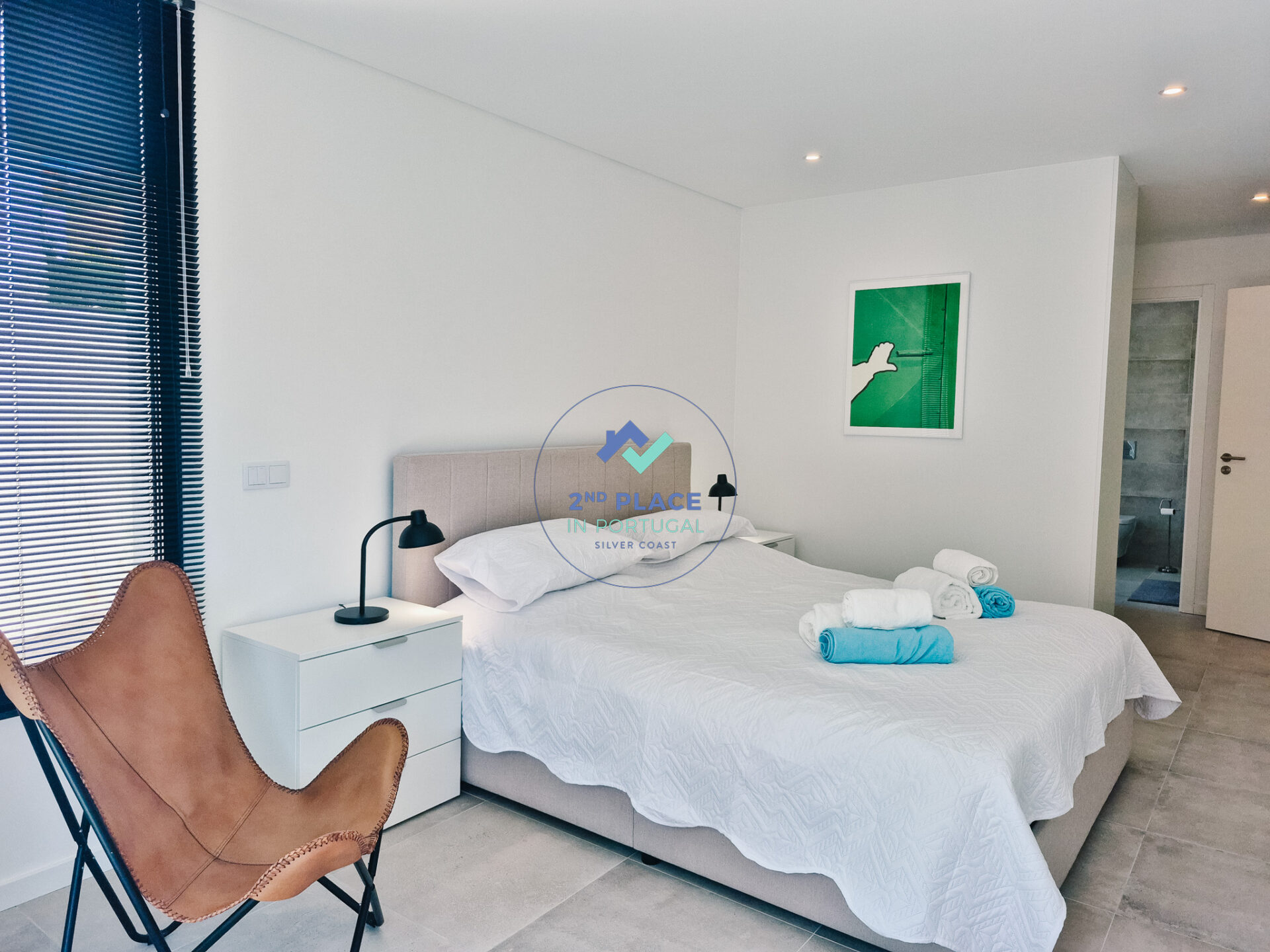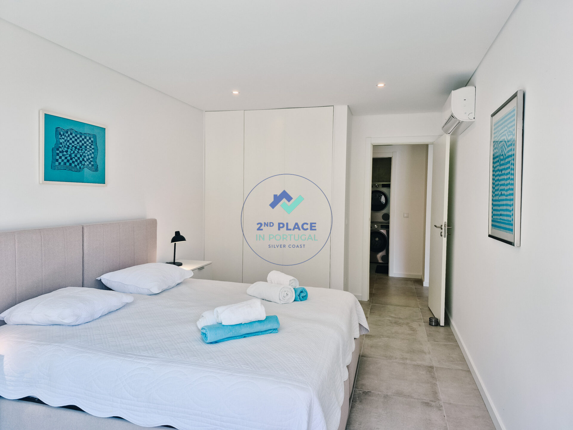 De woonkamer is licht en ruim, met een comfortabele bank, tv en directe toegang tot het privébalkon met ligstoelen. De hoofdslaapkamer beschikt over een tweepersoonsbed, ingebouwde kasten, eigen badkamer met douche, wastafel en toilet, en directe toegang tot het balkon. De tweede slaapkamer heeft twee eenpersoonsbedden, ingebouwde kasten en toegang tot het balkon. De hoofdbadkamer is uitgerust met douche, wastafel, toilet en een was- en droogmachine.